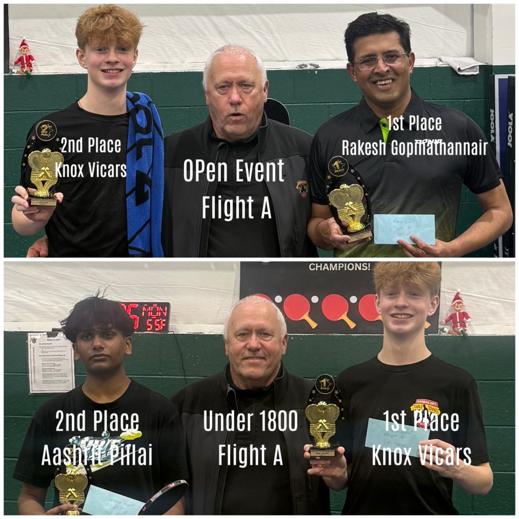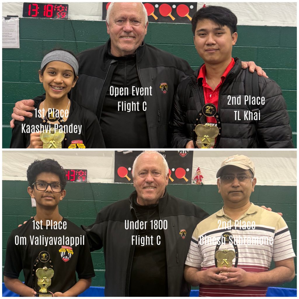 8 KCTT juniors traveled to the 10th Annual Joplin Table Tennis Tournament: Juan De Andres Barriero, Sohum Bhagwat, Rohan Gopinathannair, Arnav Mairal, Kaashvi Pandey, Aashrit Pitchiah, Addy Saxena, & Knox Vicars.
